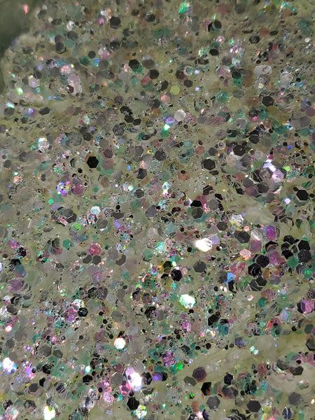 A crazy, amazing custom, GLOWING mix! A mix of chunky, high sparkle glitters, and YELLOW Glow powder! This mix is truly remarkable!